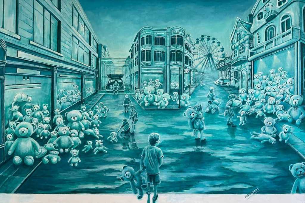 The dolls in the painting symbolize the good and bad people who have passed through my life—those who walked beside me, grew with me, and still remain present in different ways.